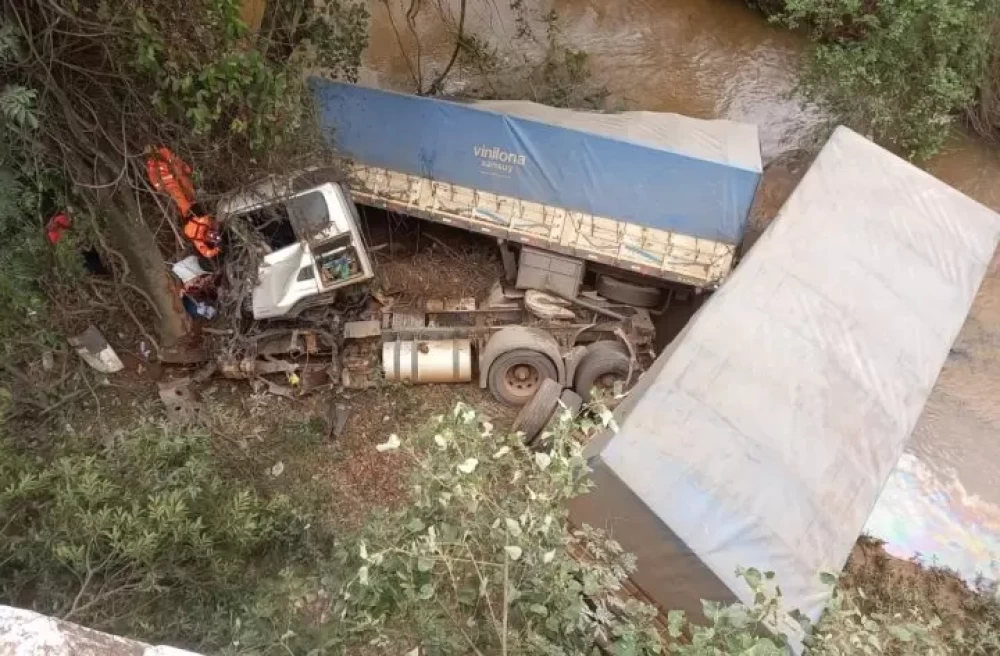 Carreta cai de ponte e motorista morre em Nova Serrana