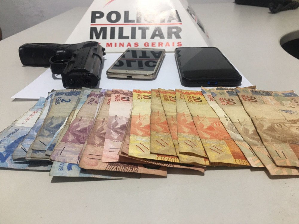 Foi feito rastreamento e, mais uma vez com o auxílio das câmeras de OLHO VIVO, os suspeitos foram encontrados e abordados no bairro Brasília. Com eles foram encontrados: uma réplica de arma de fogo, cerca de R$ 400 em dinheiro, aparelhos celulares, roupas usadas no delito e materiais relativos ao fato.