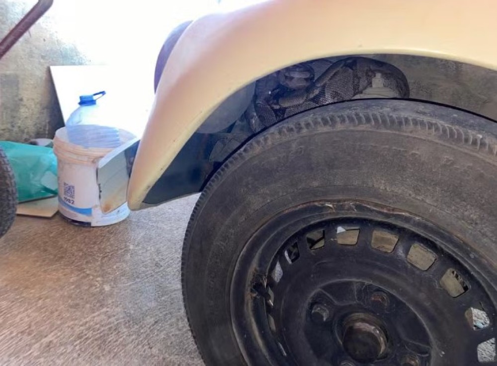 Jiboia é achada enrolada em roda de carro em Arcos/MG