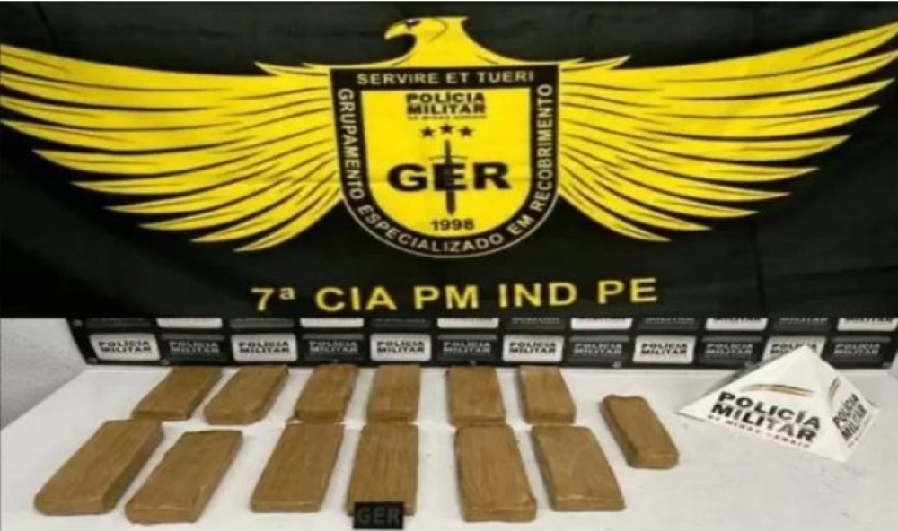 Os militares compareceram ao local e abordaram um homem em atitudes suspeitas. Com ele, foi localizado um pacote grande contendo 13 barras de maconha.