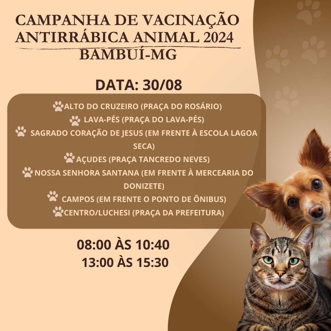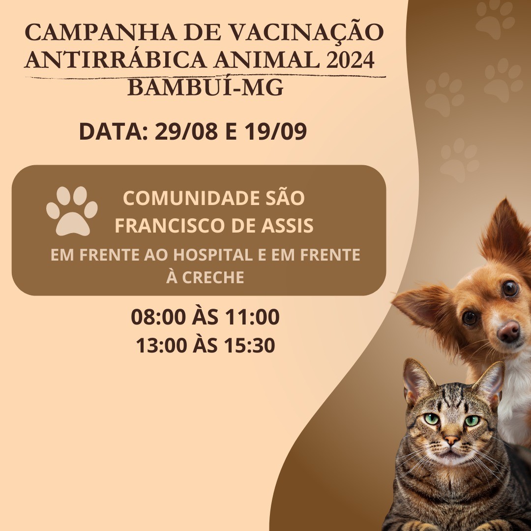 A Prefeitura de Bambuí faz mais uma etapa da campanha de vacinação antirrábica animal nesta semana.