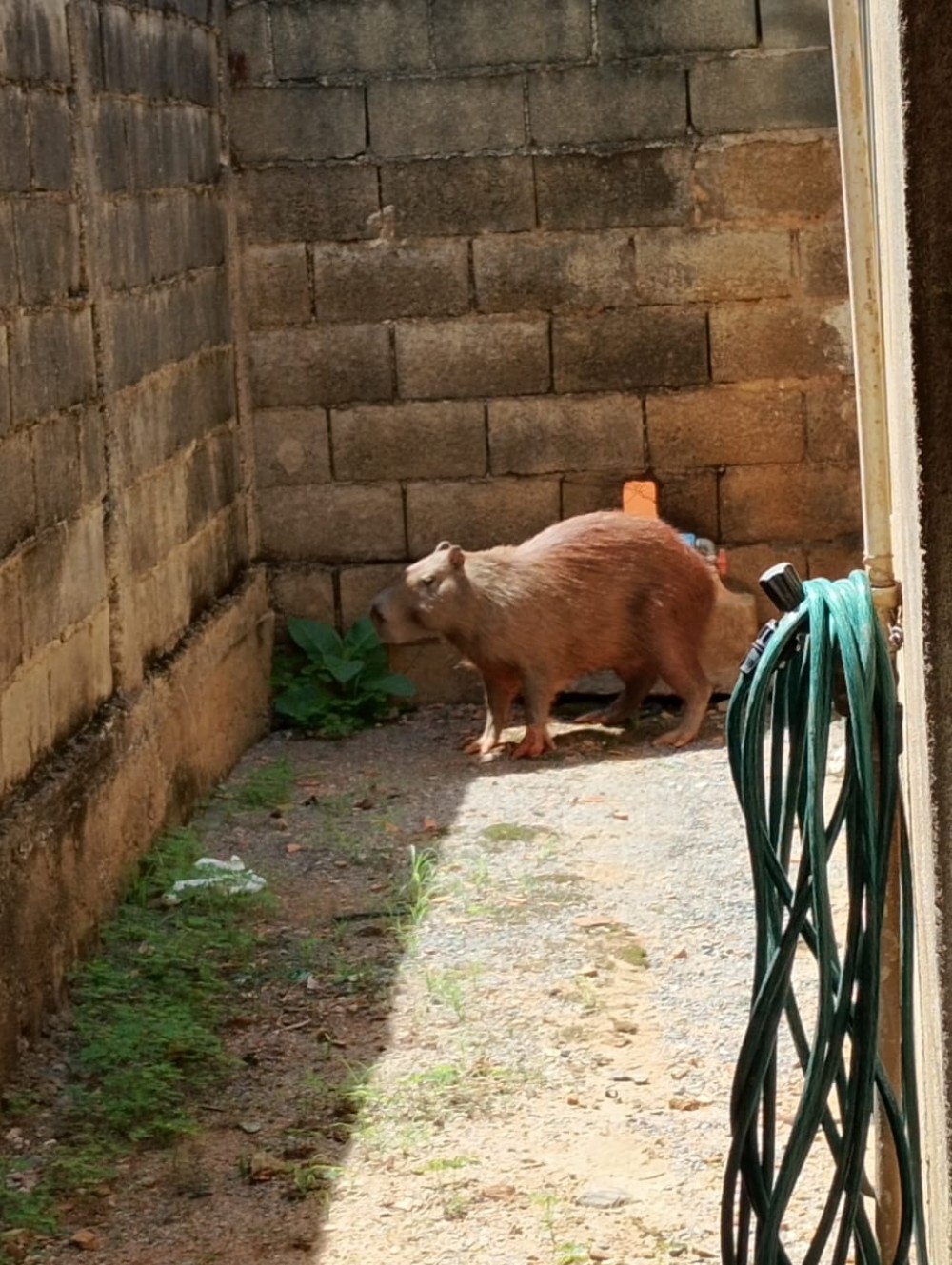 Ao chegarem ao local por volta das 8h, os militares identificaram que o animal se tratava de uma capivara, que estava saudável e sem qualquer ferimento. Seguindo os protocolos de segurança, a guarnição realizou a captura de forma técnica, evitando riscos aos moradores e preservando a integridade do animal.
