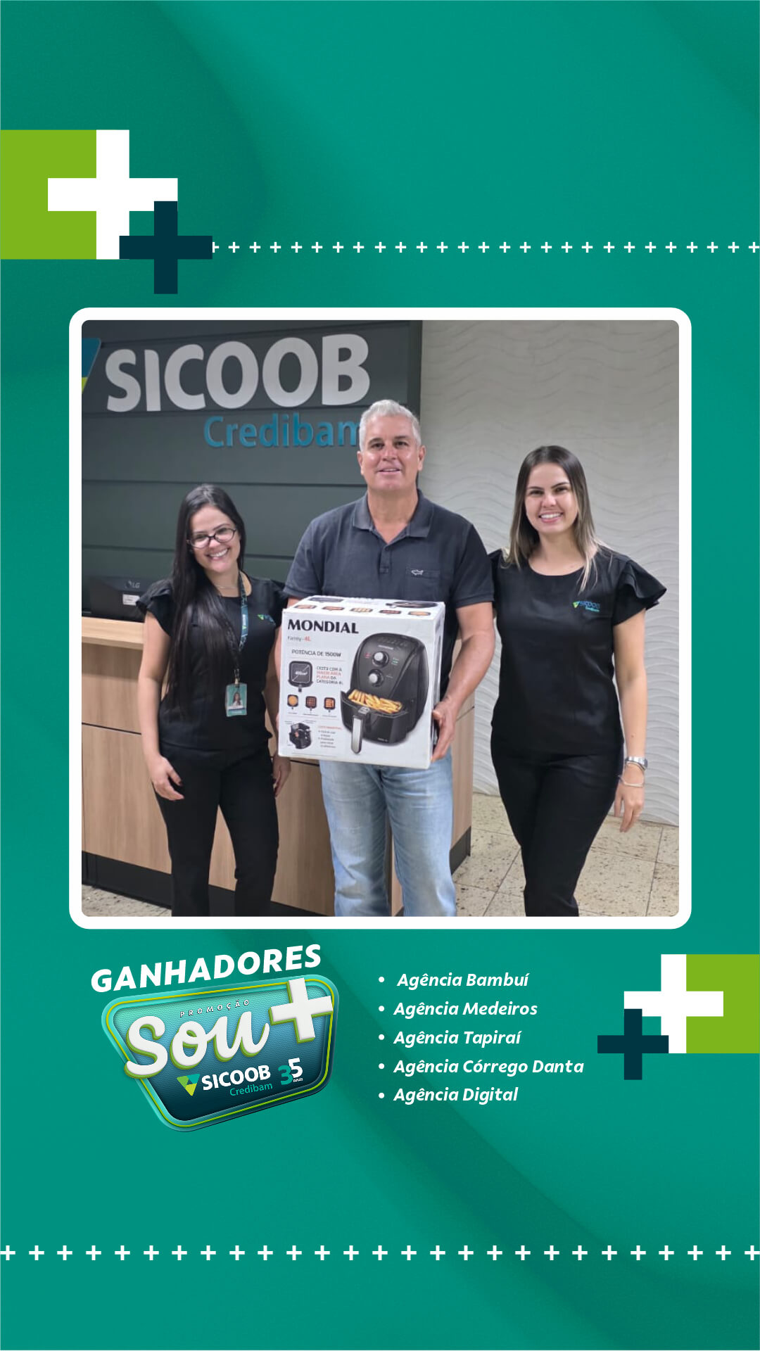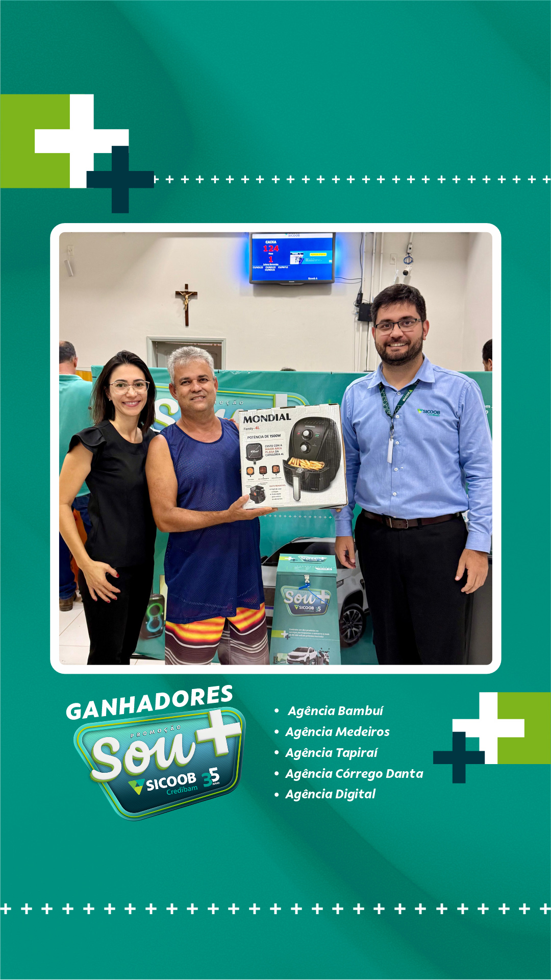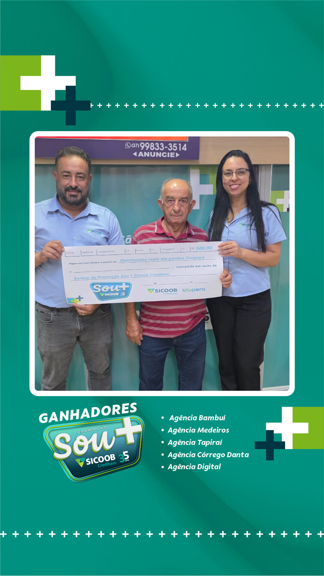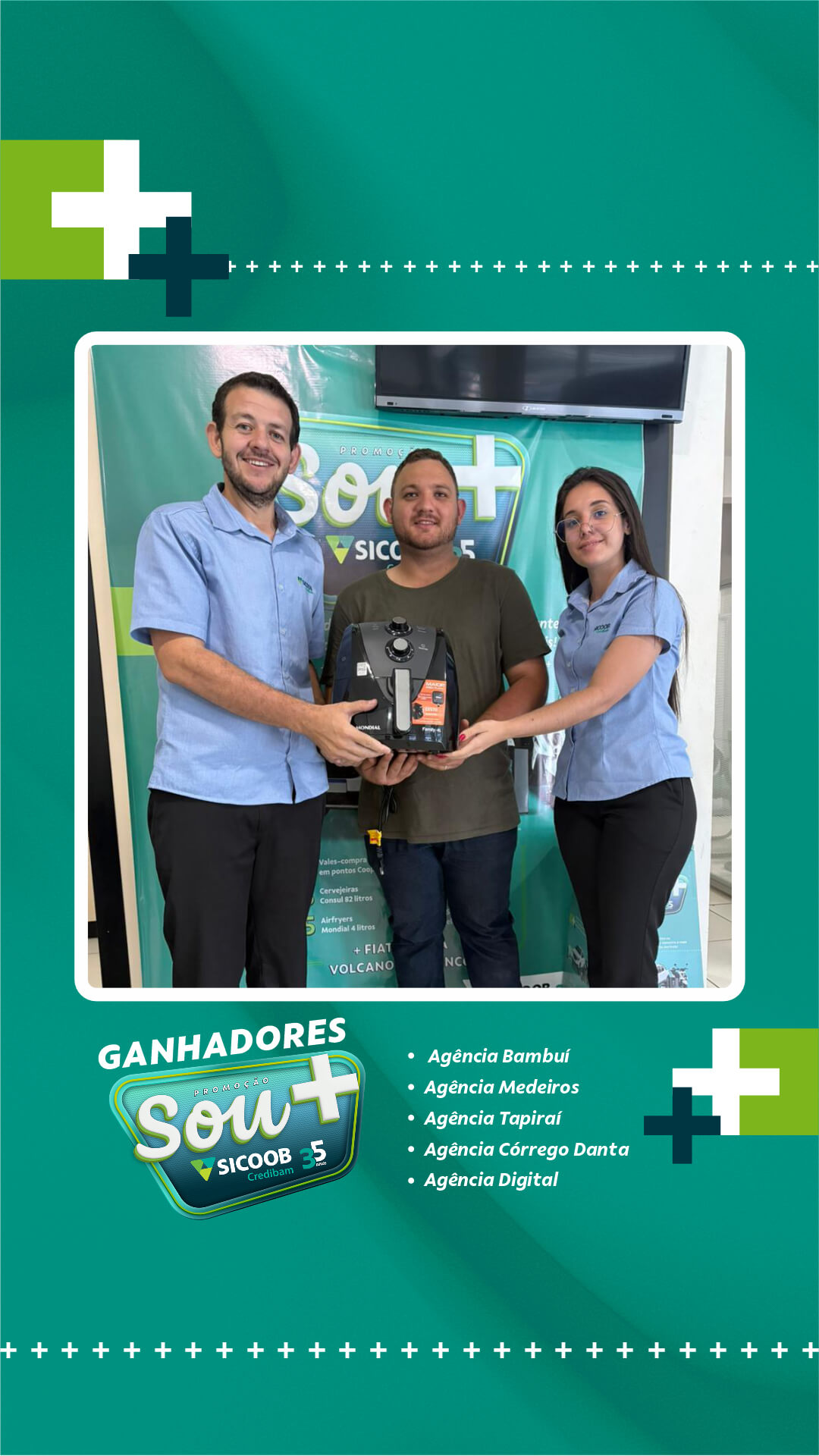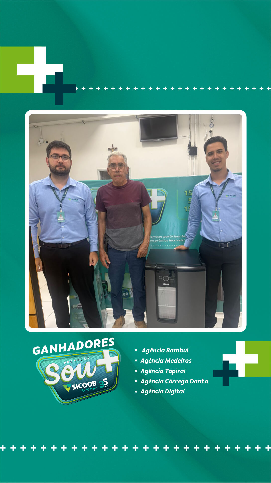 Neste primeiro sorteio, foram premiados cooperados das cidades de atuação da cooperativa: Bambuí, Medeiros, Tapiraí e Córrego Danta, além de participantes vinculados à Agência Digital. A entrega dos prêmios foi realizada diretamente pelas equipes das unidades, nos respectivos municípios.